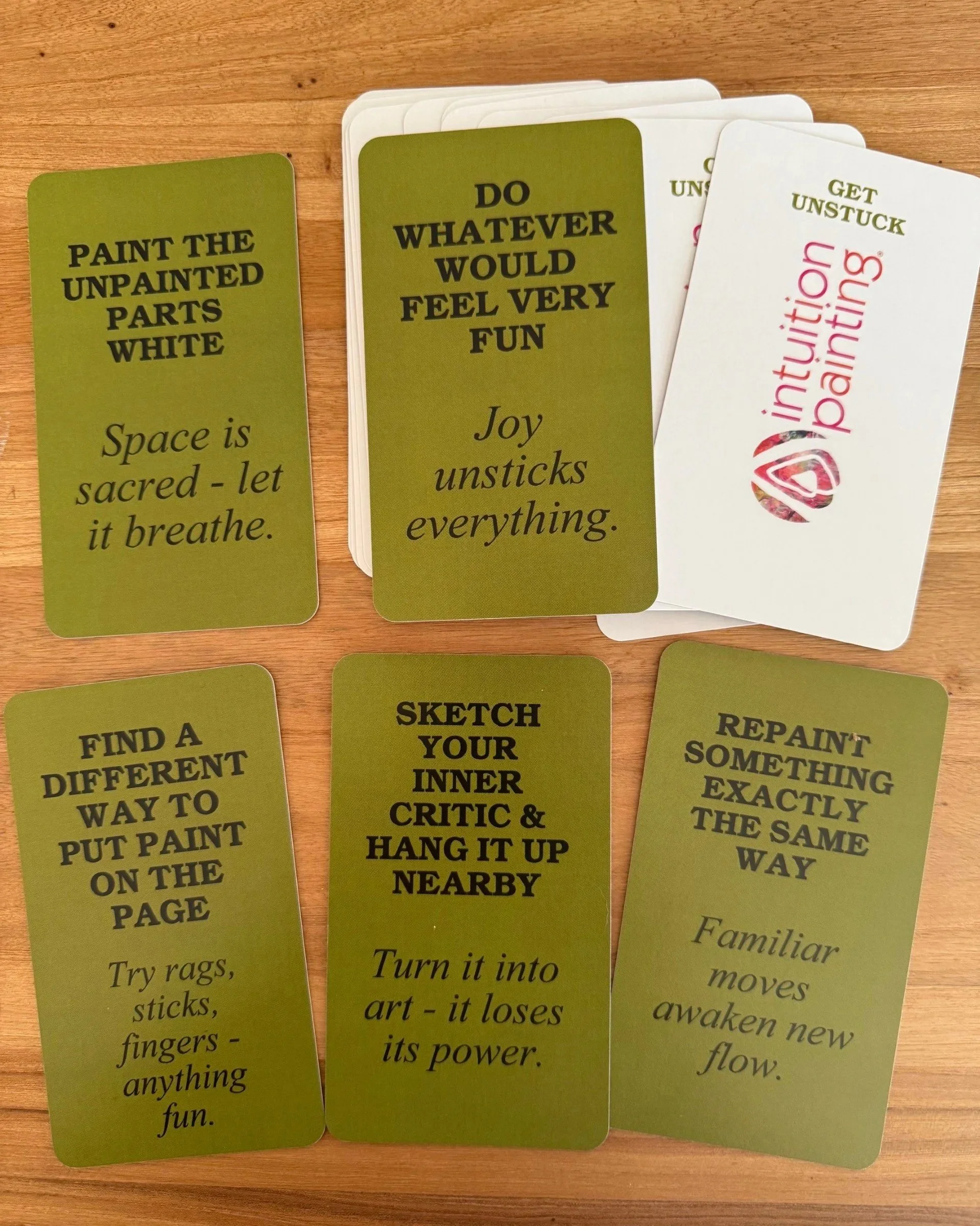 Each card pairs one of my paintings with a “what if” question designed to bring body, mind, and feelings back into alignment — toward presence, coherence, and wholeness.