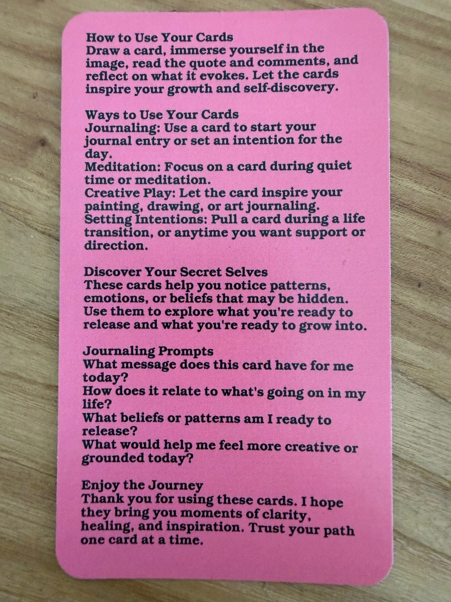 Printed on high-quality card stock with care and intention, these cards were born from my own journey, and I hope they guide you as they’ve guided me.